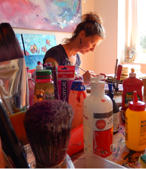 Doneert een deel van de opbrengsten van de verkoop van haar kunstwerken. ‘Schilderen en tekenen is mijn passie en ik voel me bevoorrecht dat ik daar geld mee kan verdienen. Omdat ik graag anderen wil laten delen in dit voorrecht besloot ik op zoek te gaan naar een goed doel. Ik kwam via via bij Microkrediet voor Moeders terecht. De zin “Wij geven de hengel in plaats van de vis.” sloeg meteen in als een bom. Vrouwen krijgen zo zelf de regie over hun leven. Dat is pas humanitaire hulp!’